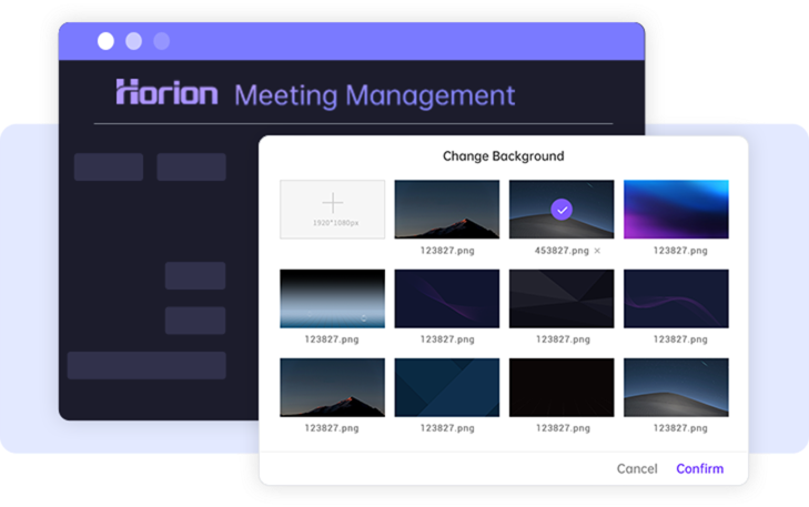 Horion meeting management system provides a variety of background images for users to choose from, and also supports customization.