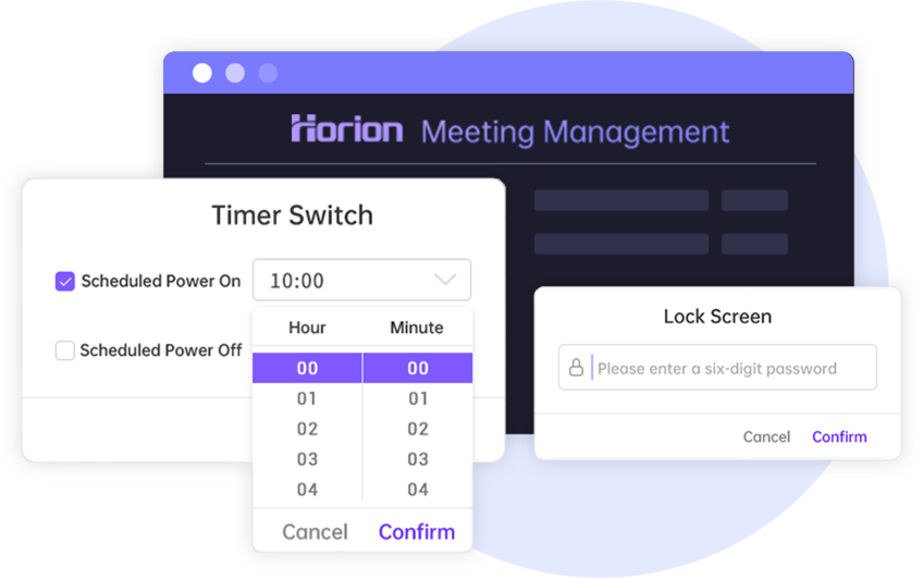 Horion meeting management system automatically turn on or off the equipment at the specified time, ensuring that meeting room is always available when needed while avoiding unnecessary energy consumption.