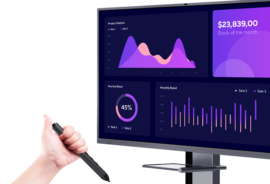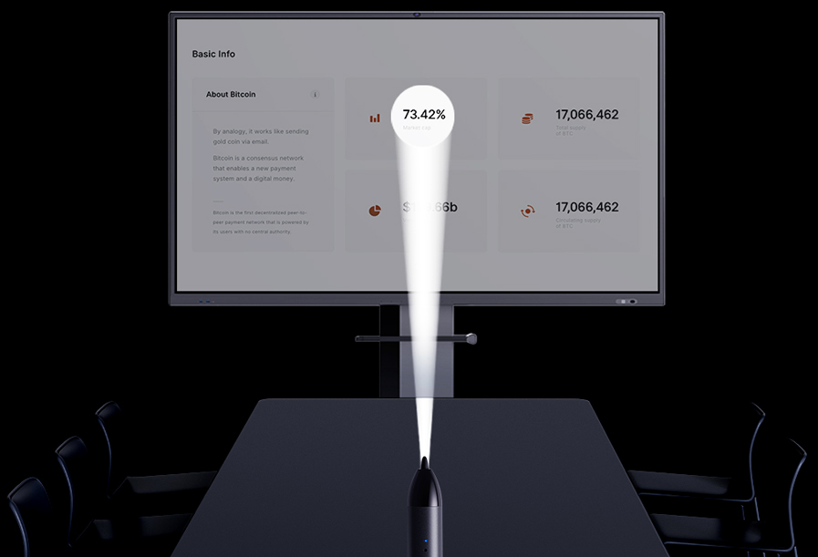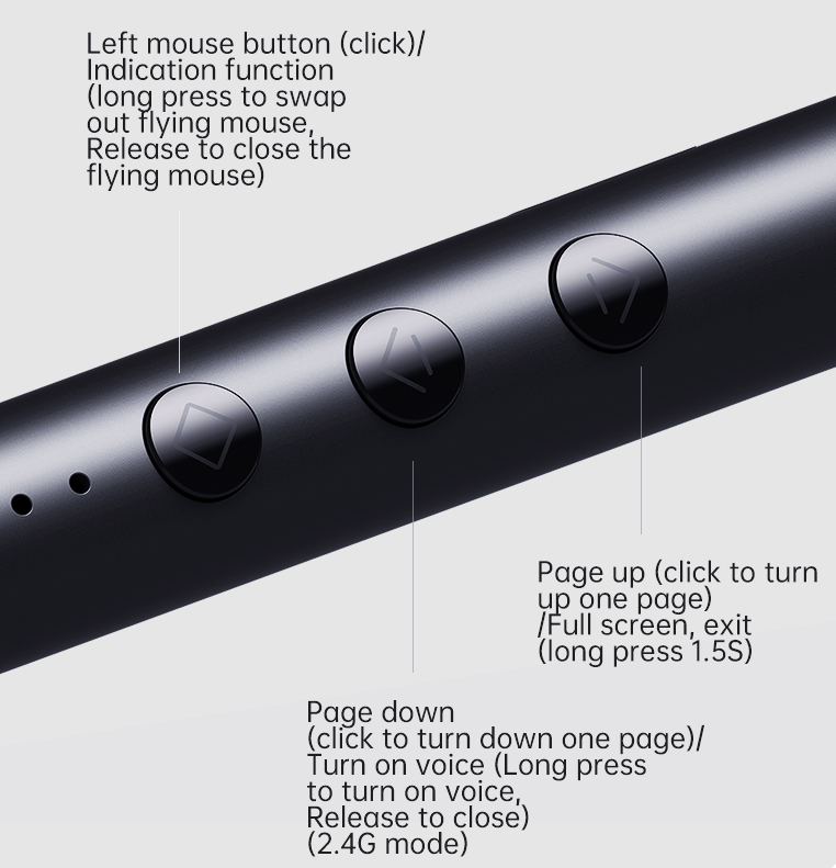 1. Short click to make annotation, long press for 1.5s to turn on the spotlight, long press again to turn off.