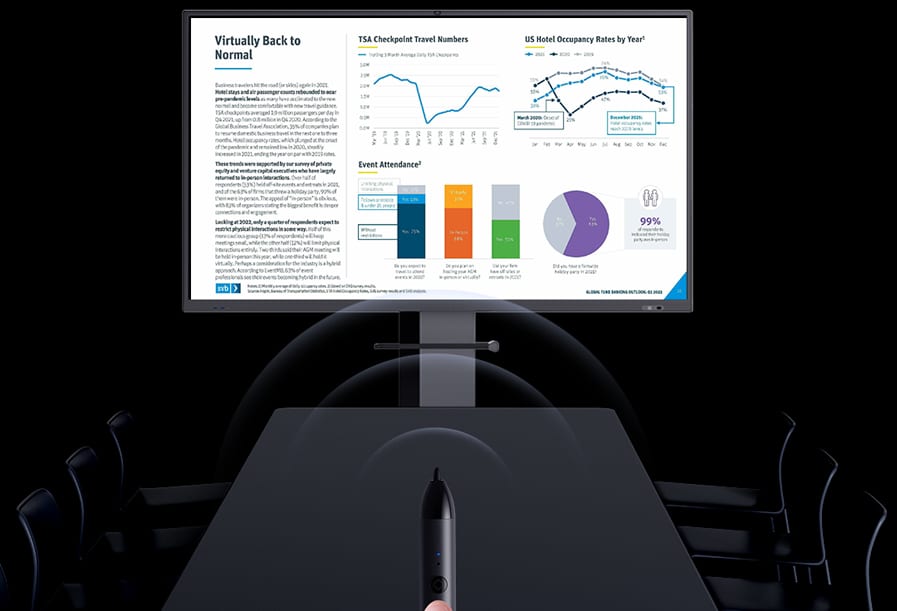 Long press the top of the stylus pen for interactive panel to start the spotlight mode that enables you to display key contents to unify the thinking of all participants.